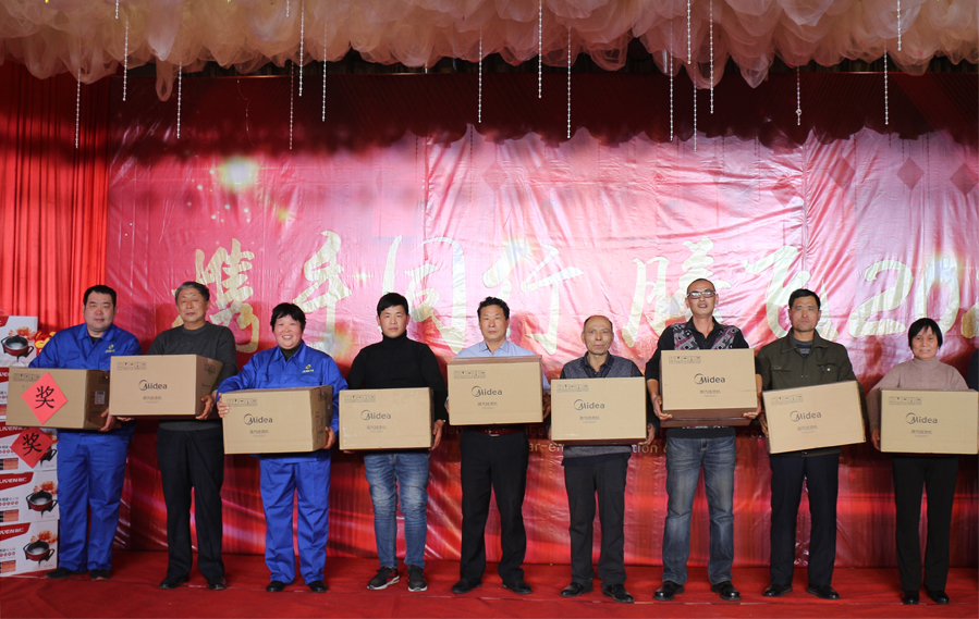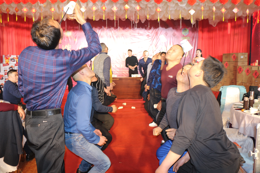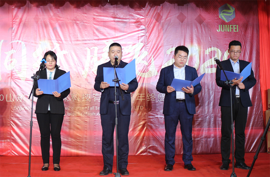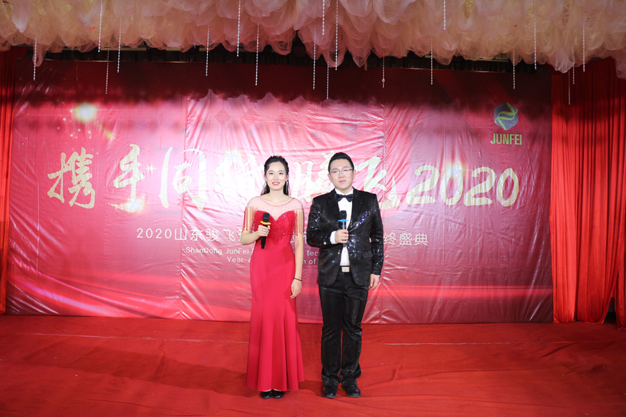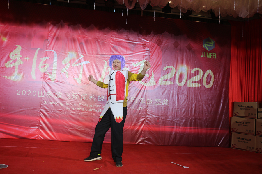 東方一夜寒意去,萬木含綠待春來;鼠年數(shù)月數(shù)九寒,富貴吉祥賀團圓。2020年1月19日,山東駿飛環(huán)??萍加邢薰镜念I導及員工歡聚一堂,共同舉辦“攜手同行,騰飛2020”迎新晚會。晚會上各個部門的節(jié)目精彩紛呈,財務部的舞蹈、車間的大合唱、技術部的三句半、研發(fā)中心的獨唱、質檢部的太極劍,銷售部的詩朗誦《我自豪,我是駿飛人》更是將晚會推上了高潮。面粉傳遞、紙杯傳遞及衣穿到底的游戲充分展現(xiàn)了駿飛同事間的合作精神,公司也為員工準備了豐厚的獎品,董事長更是現(xiàn)場發(fā)紅包。